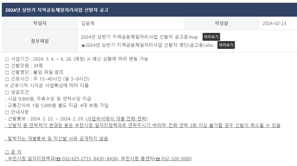 공공근로는 각 지자체마다 사업기간, 선발인원, 근로시간이 다르므로, 지자체 홈페이지에서 반드시 근로조건 및 신청방법을 확인해야 합니다.