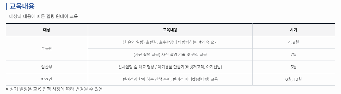 1박2일 아닌 당일형 힐링교육인 숲빛 메모리 프로그램도 있는데, 호반길, 호수광장에서 진행하는 야외 숲 요가라든지 청남대를 배경으로 한 사진 촬영 기술도 교육받을 수 있습니다.