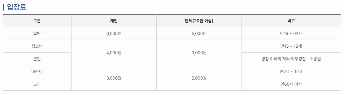 병역명문가증 소지자도 무료 입장 혜택을 받을 수 있으니 참고하면 좋겠죠.