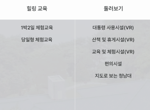 청남대 홈페이지에서는 숲해설가와 함께 숲길을 체험하는 프로그램이나 1박2일 체험교육 숲빛 스테이 등 다양한 프로그램들을 예약접수 할 수 있습니다.